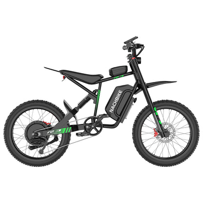 The R3 electric dirt bike packs a rear brushless motor (120N·m torque). Its 80A/300A controller delivers instant throttle, 94% efficiency, and smart heat protection. A 60V 25Ah (1500Wh) battery offers up to 50 miles of range and charges in 5 hours with built-in cooling. Ride smoother with adjustable front fork, upgraded rear shock, and 4-piston hydraulic brakes. Dual lights boost safety; 24.5×2.75in tires ensure grip on any terrain. R3 arrives 85% pre-assembled, fits riders 5’5”–6’5”, and includes a 1-year warranty—built for real off-road power.